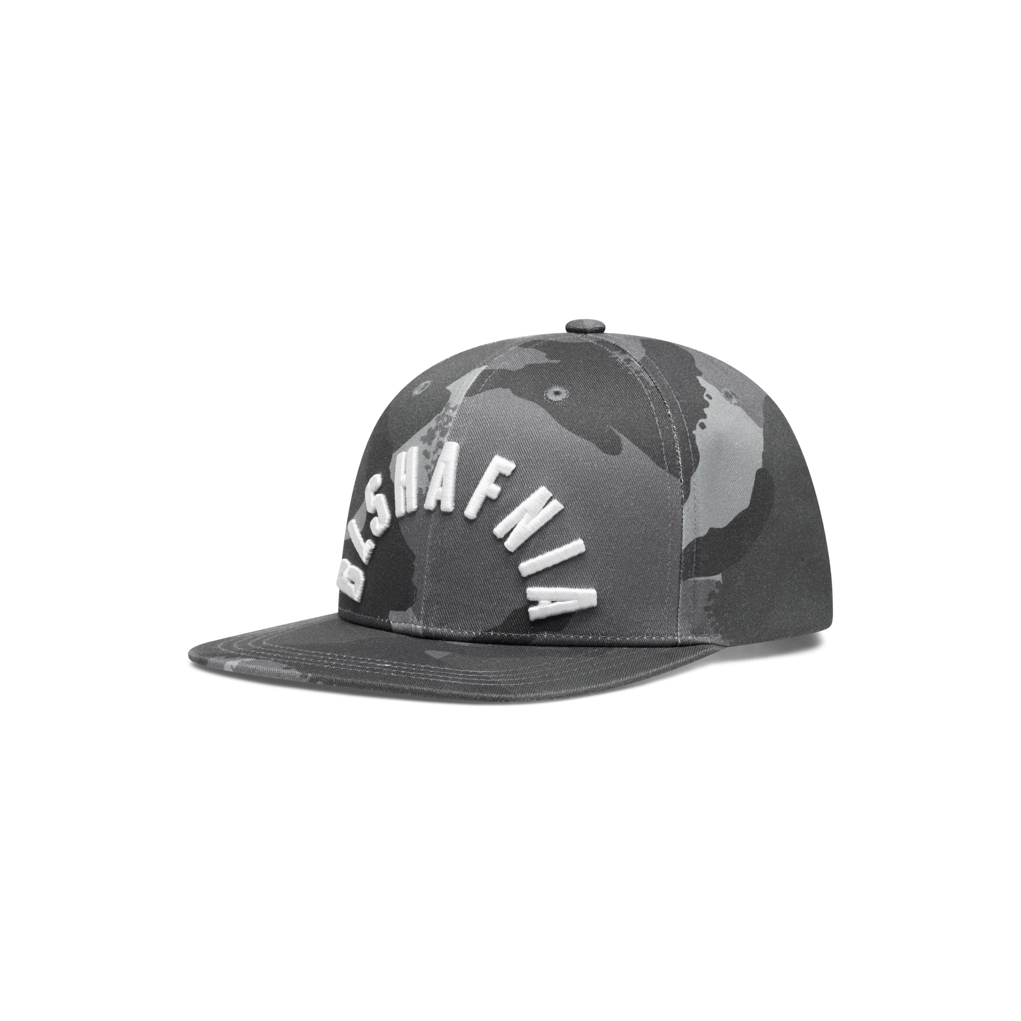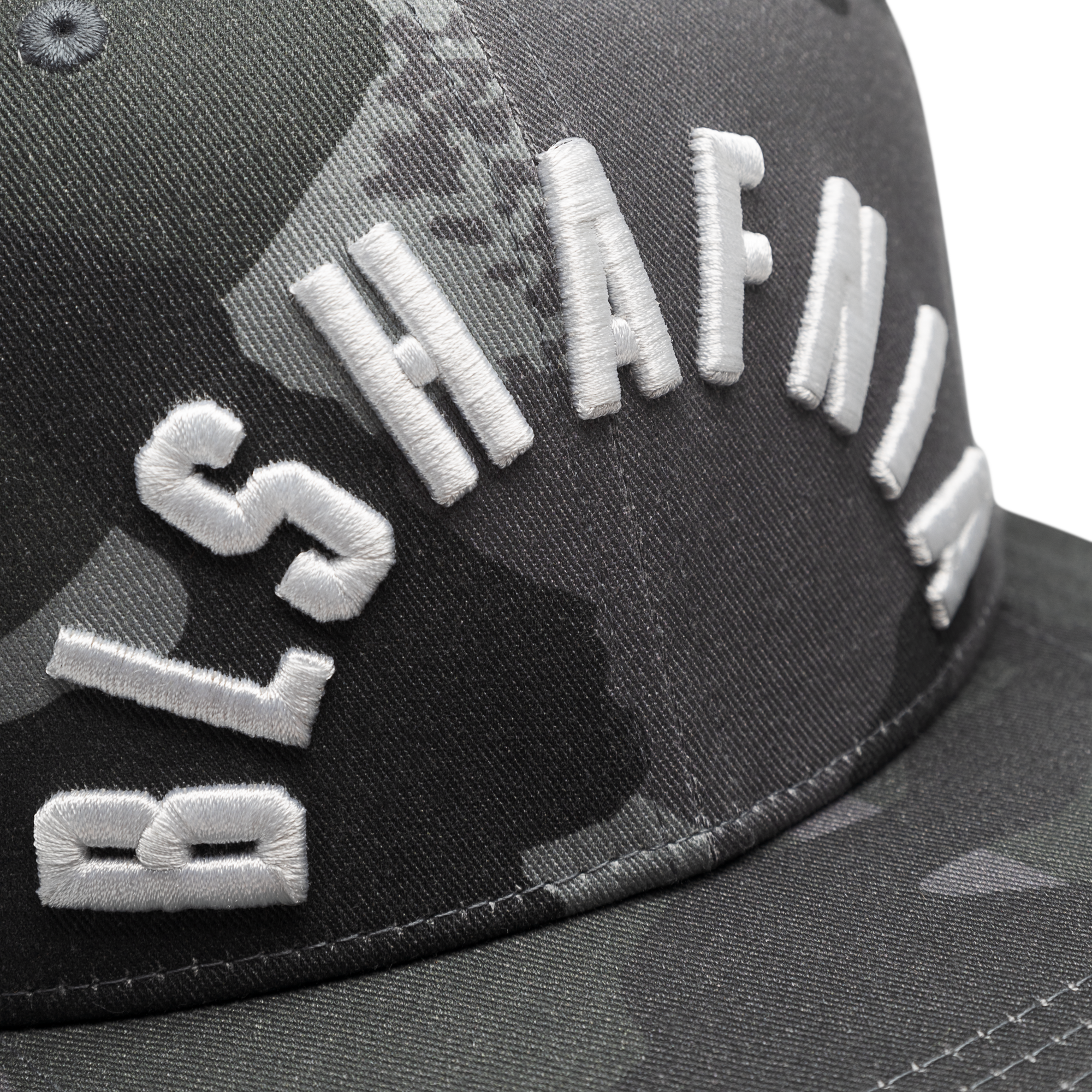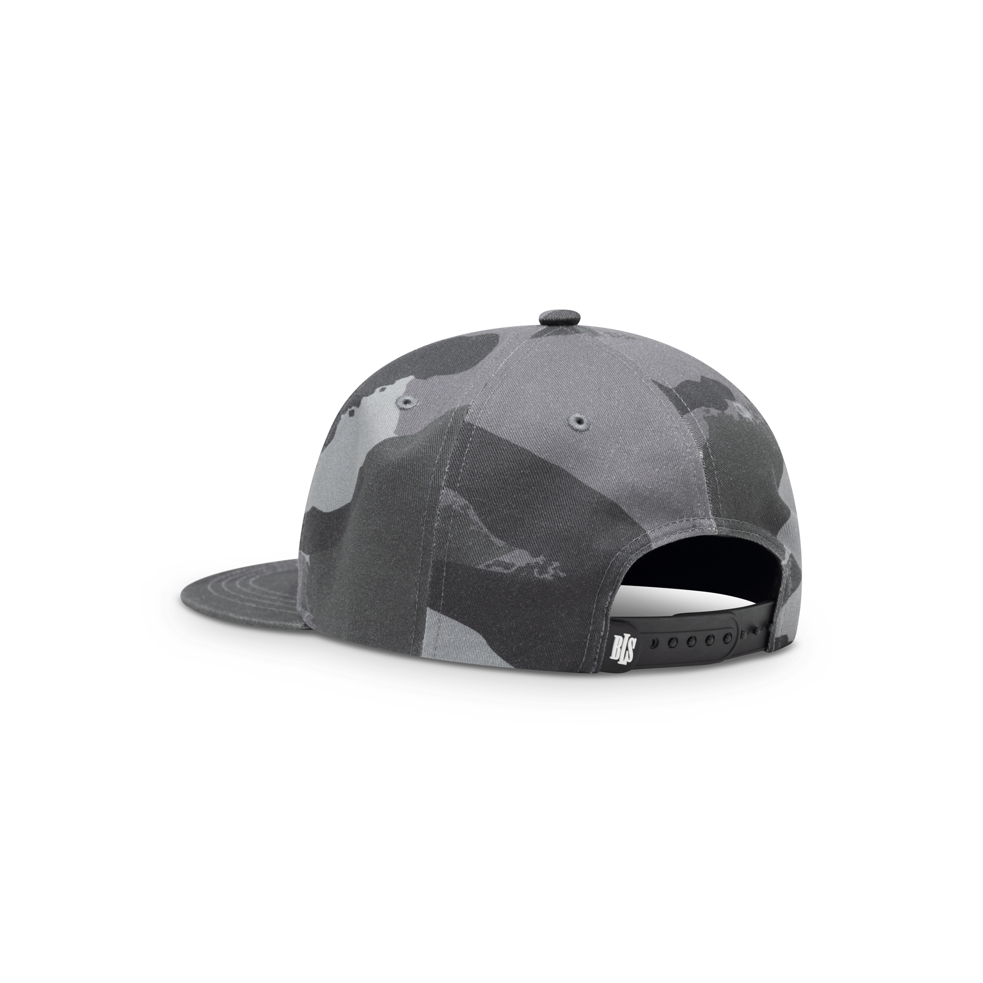 Classic snapback cap with a flat brim, featuring the DPM BLS Logo on the front, made with an all-over camo print. The cap has a snapback closure and a rubber BLS logo.